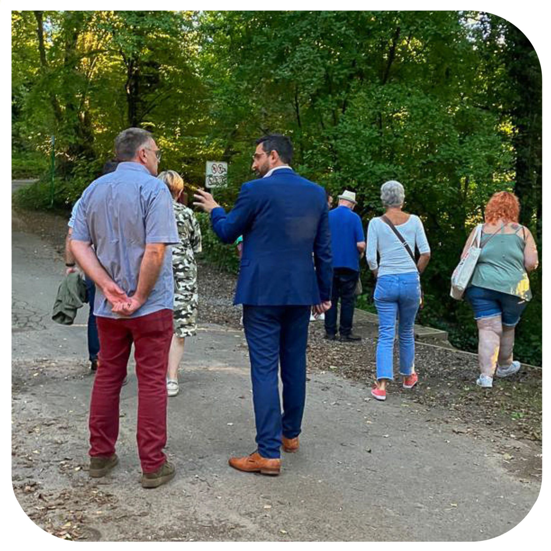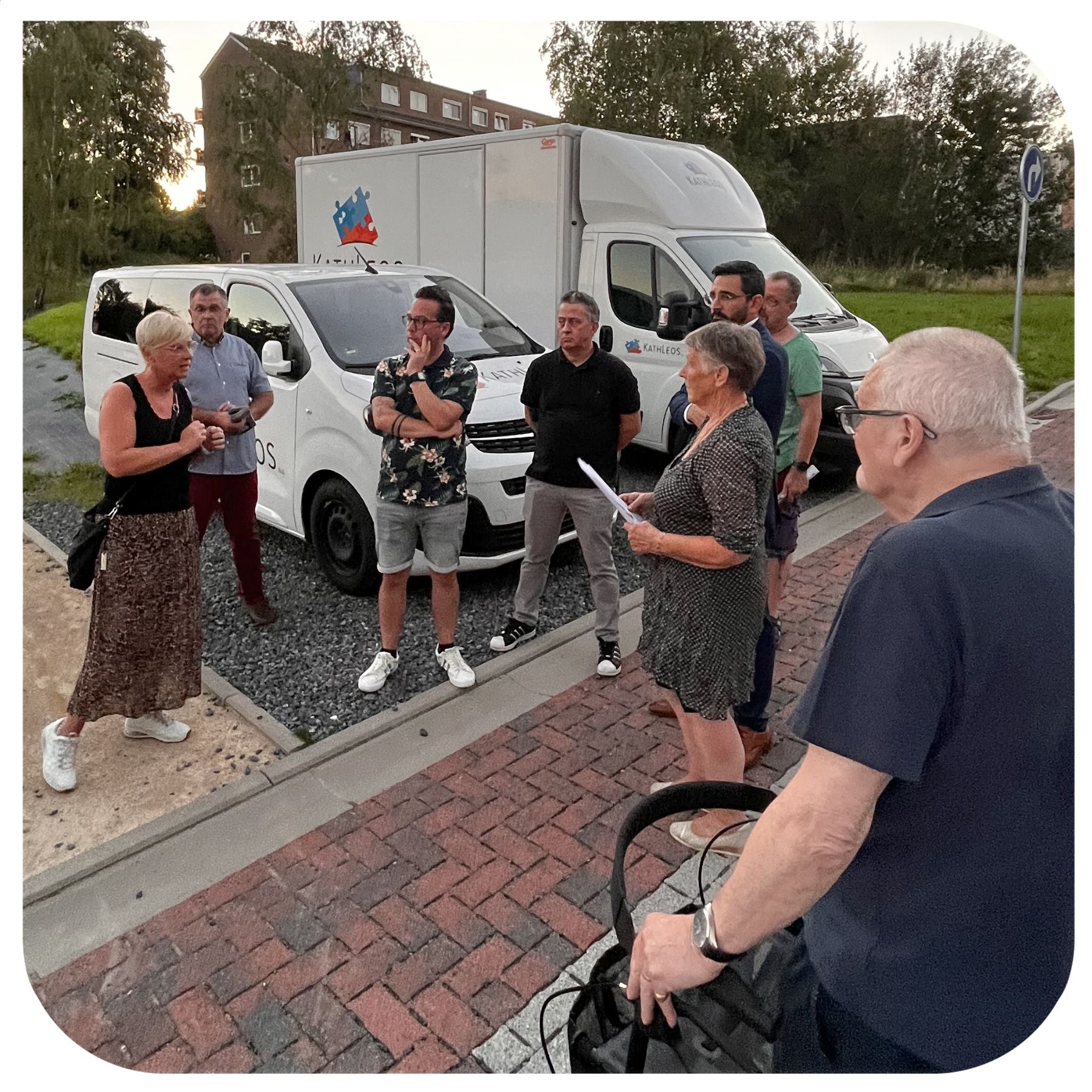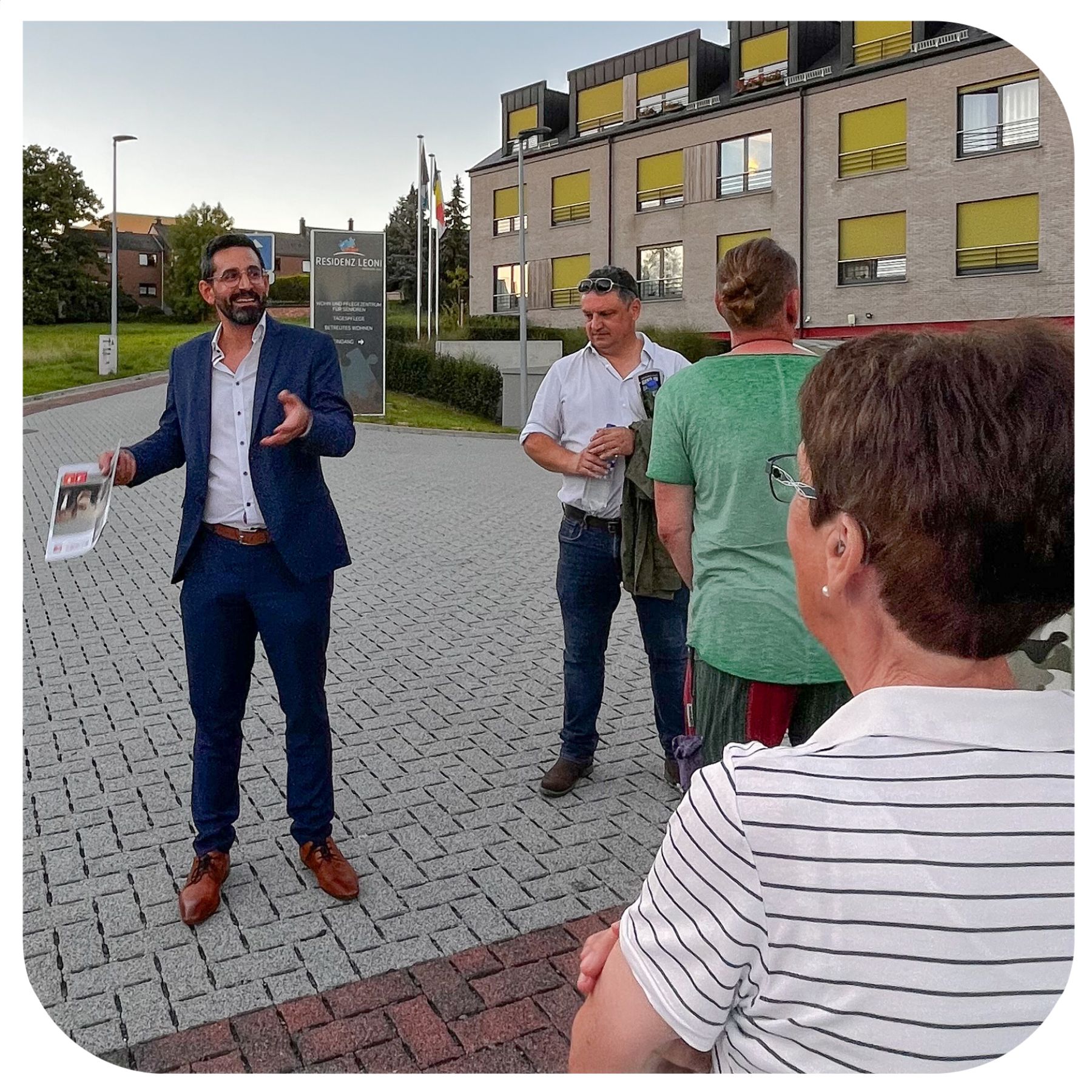 Sonne satt, strahlende Gesichter und anregende Gespräche – so sah die erste „Walk & Talk“ Tour am Dienstag, den 5. September durch die Gemeinde Kelmis aus. Bei dem Spaziergang waren Minister Antoniadis, die beiden Schöffen Björn Klinkenberg und Nadine Rotheudt sowie SP-Präsidentin Linda Zwartbol Seite an Seite mit den Bürgern unterwegs und hatten für jeden Anwesenden ein offenes Ohr.